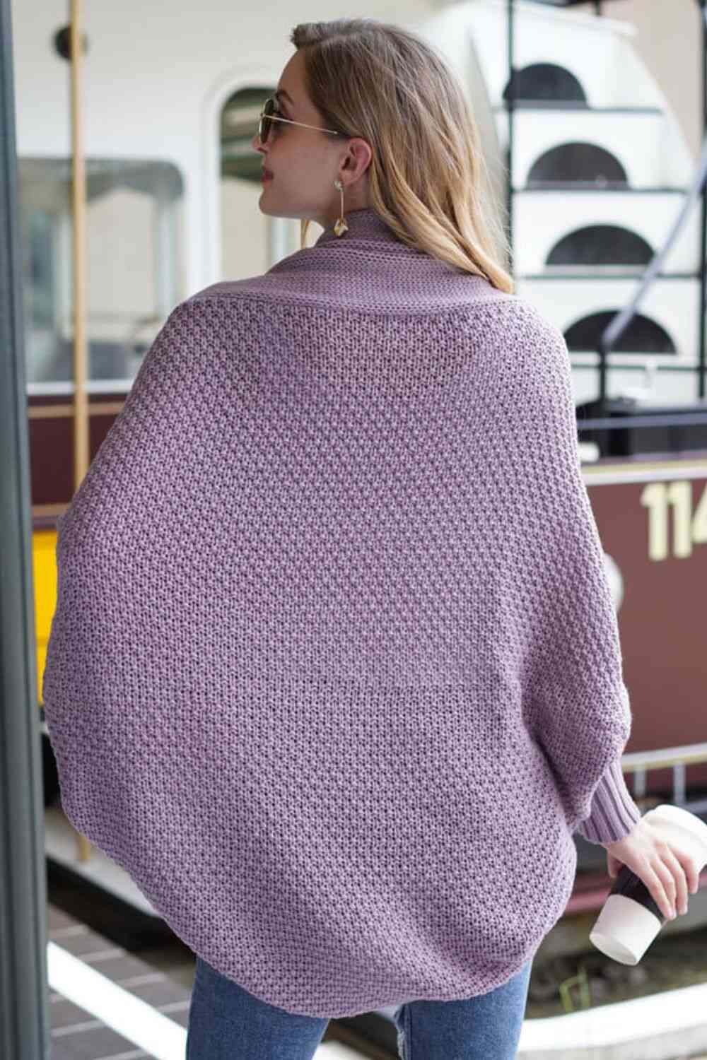 Double Take Dolman Sleeve Open Front Ribbed Trim Longline Cardigan