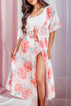 Floral Crochet Tie Front Half Sleeve Cardigan