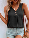Full Size Decorative Button V-Neck Tank