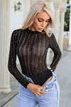 Glitter Round Neck Long Sleeve Semi-Sheer Bodysuit