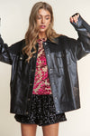 J.NNA Faux Leather Sherpa Contrast Snap Down Jacket