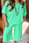 Plus Size Round Neck Half Sleeve Top and Tied Pants Set