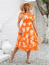 Printed Asymmetric Neck Short Sleeve Midi Dress