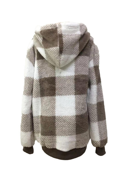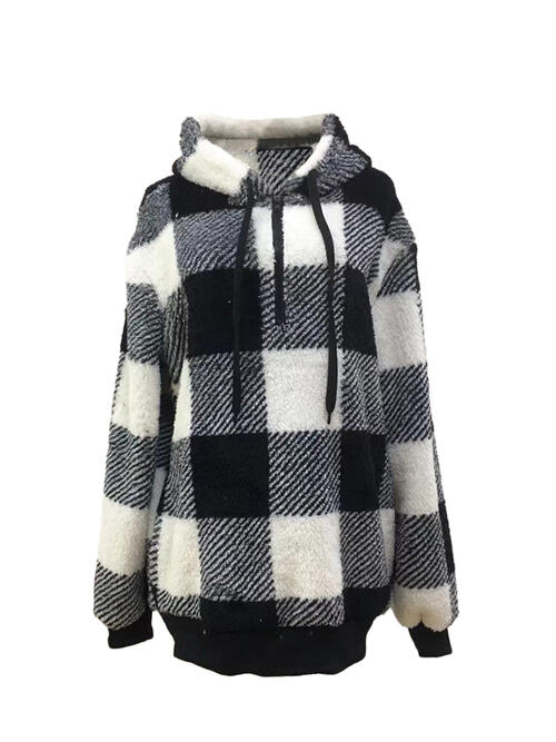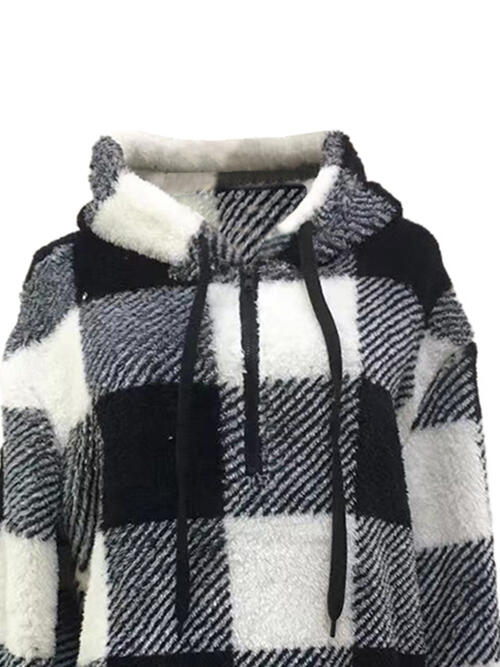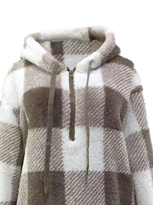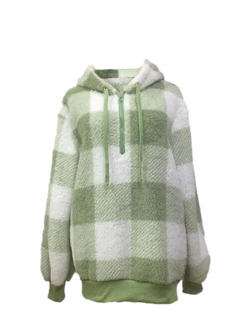 Plaid Half Zip Drawstring Hoodie