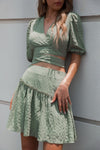 Surplice Neck Tie Back Top and Frill Trim Skirt Set